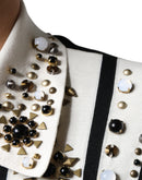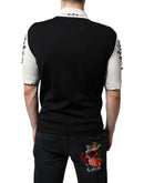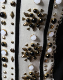 Dolce & Gabbana White Black Silk Studded Stone Crystal Shirt