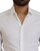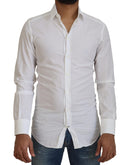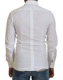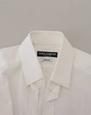 Dolce & Gabbana White Cotton Slim Fit Formal Dress GOLD Shirt