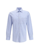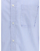 The striped Shirt by Maison Margiela is crafted from pure cotton and stands out for its refined, minimalist design. It features a classic collar, front button closure, and long sleeves with buttoned cuffs. A single chest pocket with defined edges adds a tailored and functional touch, embodying the understated elegance and meticulous craftsmanship that define the maison.