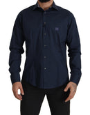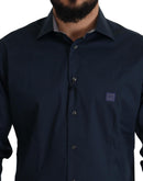 Roberto Cavalli Navy Blue Cotton Dress Formal Shirt