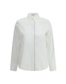 The Cotton Shirt by Brunello Cucinelli is an elegant and refined piece, characterized by a classic collar that gives it a timeless look. The front closure with hidden buttons, embellished with iconic jewels, adds a touch of luxury and sophistication. The adjustable cuffs with buttons allow you to adapt the fit for greater comfort. The monochrome pattern gives it a clean and versatile look, making this shirt perfect for both formal and casual combinations, without ever sacrificing class.