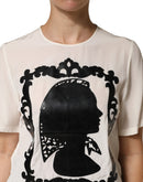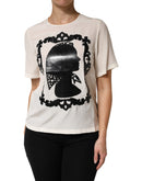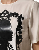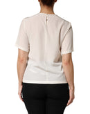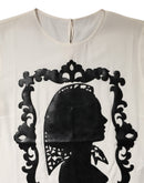 Dolce & Gabbana Cream Silk Silhouette Detail Short Sleeve Top