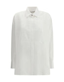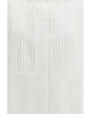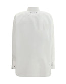 The oversized cotton poplin Shirt by Golden Goose elevates a wardrobe essential with luminous refinement. Its generous, structured silhouette is defined by a back yoke, a concealed placket with mother-of-pearl buttons, and the signature jewel button at the collar. A pleated front bib adds tailored sophistication, while jewel-embellished cuffs bring a touch of shine. The iconic double star at the back completes the shirt with Golden Goose’s unmistakable identity.