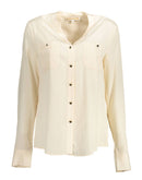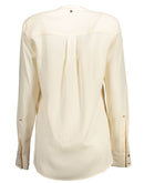 long-sleeved shirt, mandarin collar, 2-button cuffs, 2 front pockets, buttons, logo