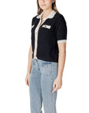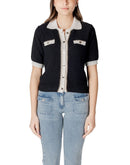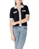 The Morgan De Toi women’s short-sleeved knit top, model 251-MNESSY, perfectly blends contemporary style with eco-conscious materials. Made from 58% recycled cotton, 38% polyester, and 4% metallic yarn, this top ensures comfort and lightness, ideal for spring and summer seasons. The design features a contrasting collar, front closure with jewel buttons, and refined faux pocket details with decorative buttons. The textured knit pattern adds sophistication, while the regular fit flatters the feminine silhouette. Suitable for both casual and more polished outfits, this knit top stands out for its versatility and Morgan De Toi’s signature attention to detail.