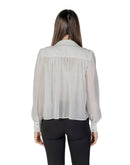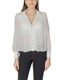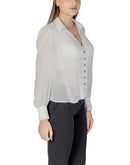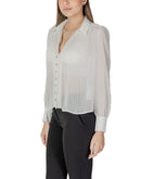 The Morgan De Toi 242-CPLIA women’s long-sleeved shirt is an elegant and versatile piece, perfect for adding a sophisticated touch to any outfit. Crafted from a lightweight fabric made of 70% polyester and 30% recycled polyester, this shirt offers a fluid fit and a pleasant feel on the skin. The front features refined pleated detailing, giving the garment movement and character, while the sheer fabric adds a feminine touch. The jewel button closure and wide cuffs enhance its classy look, making this shirt ideal for both office wear and special occasions. Pair it with tailored trousers or skirts for a stylish and sustainable choice.