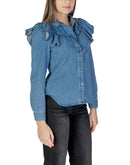 The Only ONLINDIGO LIFE LS FRILL DB DNM QYT 15297988 women’s shirt stands out for its modern and refined design. Made from 100% cotton, it ensures comfort and breathability for all-day wear. The long sleeves are enhanced by a large ruffle detail that decorates the chest and shoulders, adding a romantic and feminine touch. The front features metallic button closure for practicality and versatility, making this shirt suitable for both casual and more elegant outfits. A classic collar and meticulous stitching complete the timeless style, easily matched with jeans or trousers. This shirt is the perfect choice for those looking to add a trendy and high-quality piece to their wardrobe.