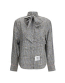 The Hunting Tweed Silk Twill Shirt by Thom Browne blends tradition with modernity in a sophisticated piece. Crafted from heritage Hunting tweed, a historic Scottish fabric, this shirt carries a century-old legacy while offering a contemporary fit, with lightweight silk that drapes effortlessly. The detachable bow at the collar adds an elegant touch, while the Thom Browne name tag and subtle grosgrain trim at the cuffs give it a distinctive edge. Pair it with the Hunting Tweed Backstrap Trousers for a refined look.