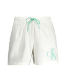 Dive into summer with the eco-conscious elegance of CALVIN KLEIN’s swim shorts. These crisp white boxers are a cut above the rest with a comfortable inner slip, functional pockets, and an elastic waistband with drawstrings for the perfect fit. Emblazoned with the brand’s iconic logo for a trendy touch, they are crafted with 95% recycled polyester, making a statement in both style and sustainability. Be bold, be sophisticated; be kind to the planet without sacrificing an ounce of cool.