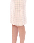 Andrea Incontri White Cotton Checkered Pencil Skirt
