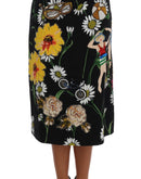Dolce & Gabbana Black Embellished Daisy Brocade Skirt