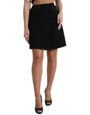 Dolce & Gabbana Black Wool Button High Waist Aline Mini Skirt