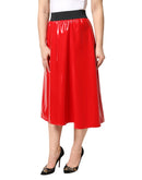 midi skirt is crafted from glossy red polyester with a classic A-line silhouette. The vibrant hue and smooth finish exude confidence and elegance, perfect for chic day-to-night styling.