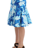 Koonhor Blue Peplum Fresco-Print Straight Pencil Skirt