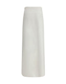 Max Mara’s long Skirt has a feminine silhouette, fitted at the hips and flared at the bottom. Made of compact viscose jersey, it is defined at the waist by a wide waistband and closed with an invisible zipper at the hip. On the back, tone-on-tone Max Mara logo embroidery completes the design with understated elegance.