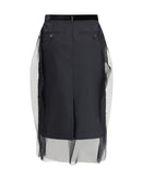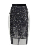 The sequin Skirt by Sacai embodies contemporary elegance with refined details. Its shimmering fabric and sophisticated cut create a glamorous effect, while the hidden back zip and hook closure ensure a clean fit. Back welt pockets with buttons and a rear slit add practicality and movement, while velvet trims complete the design with a touch of understated sophistication.