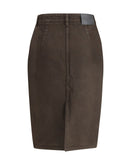 The Denim Pencil Skirt by Saint Laurent combines practicality with contemporary style in an essential piece. Crafted from certified cotton, it features a mid-rise waist with belt loops, a back vent for ease of movement, and a fitted silhouette that flatters the figure. The leather Jacron embossed with Saint Laurent Paris adds a distinctive, refined touch, making the skirt versatile for both casual and polished looks.