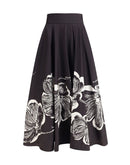 Sara Roka’s midi Skirt captivates with its vibrant graphic floral pattern, giving the garment a fresh, contemporary elegance. The full-length design enhances the figure with a wide and feminine silhouette, while the two welt pockets add a practical and refined touch. Completed with a discreet side zipper closure, this skirt combines style and functionality, perfect for adding personality to both everyday and more sophisticated looks.