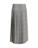The Silk Tweed Skirt by Thom Browne is designed to carry you in style through every season, offering year-round versatility. The side zip closure and the signature striped grosgrain loop tab, along with the front-positioned bow, complete the design. Perfect for an elegant and timeless look.