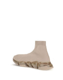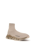 Balenciaga’s Speed Sneakers are a bold and contemporary take on the sneaker concept, with an innovative design that combines comfort and style. The fitted sock style ensures a perfect fit and a lightweight feel, while the elongated toe on the front gives a sleek, modern look. The non-slip geometric textured sole offers added stability and comfort, while the brand’s iconic contrasting signature on the outer side panel adds a distinctive and easily recognizable detail. The slip-on style without closures completes their practicality, making them easy to wear and perfect for casual-chic style.