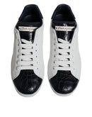 Dolce & Gabbana White Black Leather Portofino Sneakers Shoes