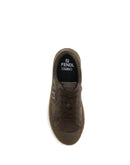 Domino Sneakers by Fendi reinterpret urban style with refined details and high-quality materials. This low-top lace-up model is crafted in soft brown suede, with an elegant tone-on-tone metal FF side detail, enhanced by a ruthenium finish that adds a sophisticated touch. Mohair-blend laces lend texture and originality, while the rubber crate sole is embellished with an embossed FF motif on the toe.