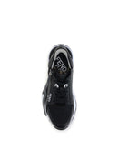 Fendi’s Flow Sneakers combine style and practicality in a distinctive modern design. Slip-ons with elastic laces and a side zipper, they are made of black FF jacquard nylon and embellished with black leather details, gray suede, and FF-patterned Lycra® trim. The wavy white rubber sole features carved F detail and a gray diagonal accent, while embossed Fendi Flow lettering on the heels adds a touch of character. An iconic model for those seeking comfort without sacrificing elegance.