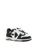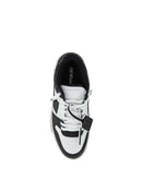 Off-White’s Out of Office Sneakers feature a perforated round toe that offers breathability and comfort. The flat sole provides stability, while the iconic embossed Arrow logo on the side panel adds a distinctive touch to the design. The logo-embossed front lace-up closure allows for a customized fit, and the brand’s iconic signature is pressure-printed on the back label, accentuating the brand connection. Finally, the iconic zipper tie tag applied to the front laces completes the bold and recognizable look of these sneakers.
