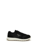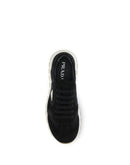 Prax 01 re-nylon Sneakers by Prada blend contemporary aesthetics and innovative materials. The upper with nylon lace loops lends a technical, modern look, enhanced by the enameled metal triangle logo and screen-printed lettering on the tongue. The lightweight foam sole with toothed tread provides comfort and grip, while the removable leather-covered footbed ensures a comfortable fit with refined details.