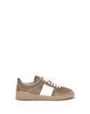 Valentino Garavani’s Upvillage leather Sneakers combine elegance and street style spirit in a contemporary design. The model features suede details and a tasseled calfskin band that harmonizes perfectly with the leather patch emblazoned with the iconic Signature VLogo detail. The screen-printed Valentino Garavani logo on the tongue reinforces the brand’s identity. The rubber sole, enriched with studded details, gives a bold and gritty touch. Ideal for those who want to combine style and comfort in one footwear with character.