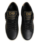 Dolce & Gabbana Black Leather Gold Red Heart Sneakers Shoes