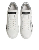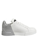 Dolce & Gabbana White Gray Low Top Leather Sneaker Shoes
