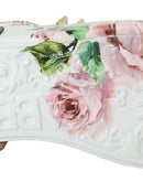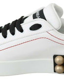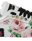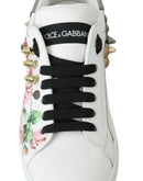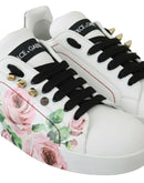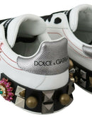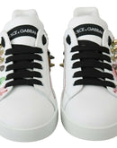 Dolce & Gabbana White Leather Crystal Roses Floral Sneakers Shoes