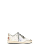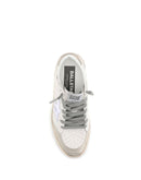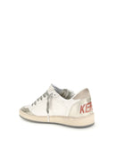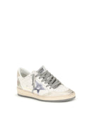 The Ball Star Sneakers by Golden Goose are low-top leather shoes featuring lace-up closure, a metallic leather star detail, and an embossed logo on the heel. The rubber sole completes the design, offering comfort and everyday style.
