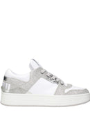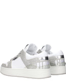 The product with MPN FLORENTFQYAXSILVERWHITE and code F85107 leather in white is a sneakers designed by Jimmy Choo. It has features like front logo, back logo.