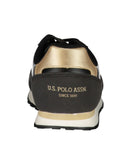 Step out with confidence in these dazzling U.S. POLO ASSN. sneakers, where style meets comfort. Featuring eye-catching gold hues and bold contrast details, these shoes are a true testament to your trendsetting lifestyle. Adorned with the iconic logo, they speak volumes of your affinity for high-end sporty elegance. Perfect for the fashion-forward woman ready to leave a mark with every step.