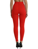 Dolce & Gabbana Red Nylon Stretch Slim Leggings Pants