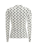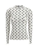 The moon long-sleeved Top by Marine Serre embodies the brand’s signature fusion of elegance and graphic identity. Crafted from stretch fabric, it features a high neck and a slim fit that enhances the silhouette. The all-over crescent moon motif, a hallmark of the Maison, lends the piece a contemporary and refined allure. A versatile and distinctive garment, ideal for completing modern looks with bold sophistication.