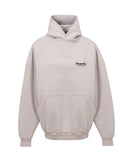 Unisex Oversized Hoodie ‘Beverly Hills’ Balenciaga. In off white cotton, front pocket with side inserts, contrasting logo embroidery on the side, oversized fit.