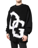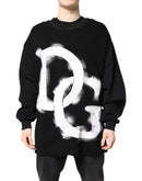 Dolce & Gabbana Black Cotton Logo Print Men Pullover Sweater