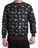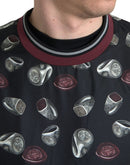 Dolce & Gabbana Black Ring Print Silk Crewneck Sweater