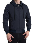 Dolce & Gabbana Blue Hooded Logo Polyester Full Zip Sweater