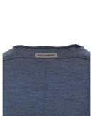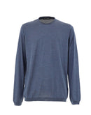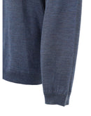 Dolce & Gabbana Basic Long-Sleeved Silk Sweater. In blue and gray, round neck, long sleeves, basic fit, soft and shiny fabric.