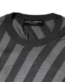 Dolce & Gabbana Gray Stripes Long Sleeve Round Neck Pullover Sweater