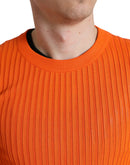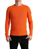 Dolce & Gabbana Orange Knitted Crewneck Men Pullover Sweater