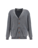 Cotton Cardigan by Golden Goose, featuring front button closure, ribbed cuffs, v-neck with ribbed trim, ribbed hem, two side patch pockets, monogram lettering applique on back, regular fit.
