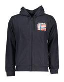 Elevate your wardrobe with the Napapijri long-sleeved hooded sweatshirt; a testament to style meets comfort. This sleek blue number boasts a brushed finish, ensuring a soft touch against the skin. The practical side is not forgotten with two handy pockets and an easy zip closure. Adorned with a bold print and the iconic Napapijri logo, it’s perfect for those who want to make a trendy statement without saying a word.
