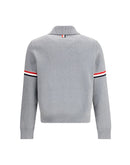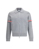 Zip Sweatshirt by Thom Browne features a ribbed collar and a double-slider front zipper closure. Ribbed cuffs and hem ensure a comfortable fit, while side welt pockets combine practicality and style. Completing the design is the iconic colorful band on the sleeves, a hallmark of the brand.