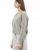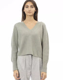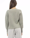 Elevate your style with Alpha Studio’s V-neck sweater, a blend of cozy wool and luxurious cashmere that promises both warmth and sophistication. Designed in Italy, this chic green piece features a finely ribbed collar, cuffs, and hem, ensuring a fit that’s both comfortable and fashion-forward. A must-have that encapsulates boldness and trendsetting for the modern fashionista.