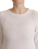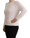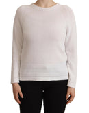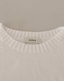 Alpha Studio White Long Sleeves Crewneck Pullover Sweater
